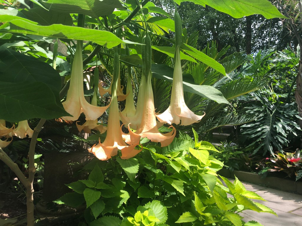 Hi Colleen! They are Angel’s Trumpet …. Brugmansia. They are from Brazil. Very cool 💖